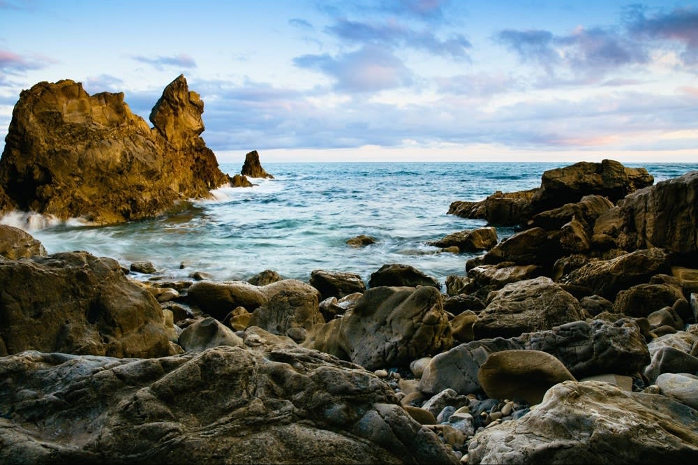 However, be extremely careful along this stretch of the beach. The place is extremely rocky, so water shoes are highly recommended. Only attempt the walk at low tide and do not give your back to the water; the ocean gets rough.